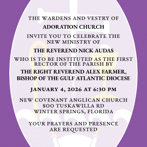 The Annual Synod of the Gulf Atlantic Diocese will be held October 17–18 at St. Peter’s Anglican Cathedral in Tallahassee, FL. The theme for this year’s gathering is Galatians 2:20—